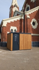 Un abri vélo et un parc de jeux est à la disposition du public.