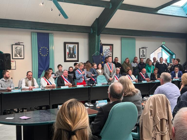 BILLY-BERCLAU vient d’ouvrir, en présence de nombreux habitant(e)s, un nouveau chapitre de son histoire lors de la séance d’installation du Conseil Municipal en salle d’honneur Charles Jorisse en Mairie-Annexe. Sous la présidence de Maryse Costeur doyenne d’âge, les élus ont renouvelé leur confiance à Steve Bossart, réélu Maire de Billy-Berclau à l’unanimité. Après la remise symbolique de l’écharpe par Daniel Delcroix, Maire Honoraire, le premier édile a conduit l’élection d’une liste paritaire de six adjoint(e)s : Séverine Rogez, Didier Gruchala, Florence Lemattre, Marc Tartar, Caroline Roussel et Gilles Goudsmett. Ce moment solennel, marqué par la lecture de la Charte de l’élu local, rappelle l’engagement moral de chaque conseiller au service des citoyens. La cérémonie s’est clôturée par le discours du Maire, suivi de la Marseillaise. Ensuite l’assistance s’est rendue au monument aux morts afin de déposer, en compagnie d’Amel Gacquerre, Sénatrice et d’Olivier Gacquerre, Maire de Béthune, une gerbe en mémoire de tous les anciens élus disparus.